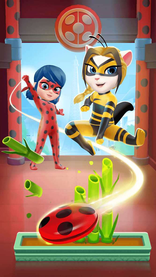 Miraculous Ladybug and Cat Noir are here for a limited time only! Dance to Miraculous music together, train in martial arts, and unlock Miraculous-inspired outfits for Talking Angela. Join this epic collab!